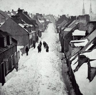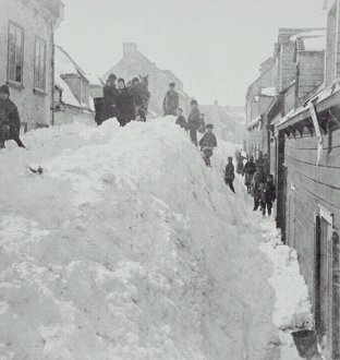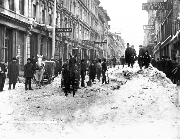 Clearing snow, Notre Dame Street in Montreal (c. 1887)