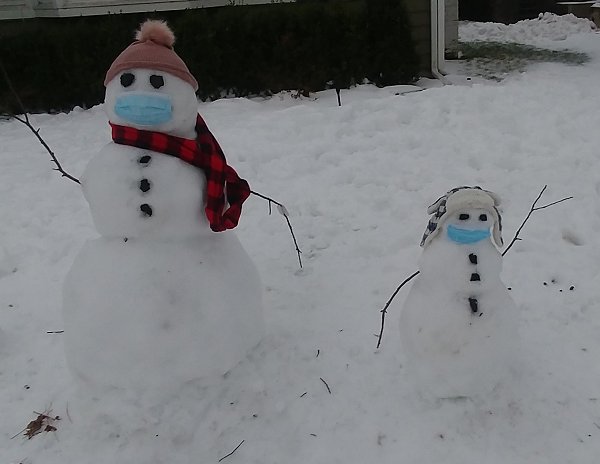 Pandemic snowmen (Mamaroneck, New York)--December 21, 2020
