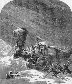 Depiction of a Michigan Central Railroad train that became stuck in snow drifts approximately seven miles outside of Chicago. The fierce blizzard raged for 30 hours in Chicago and was described as the worst blizzard in the Midwest since 1855.