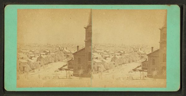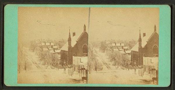 The great sleet storm of January 13, 1871, caused the telegraph lines immense expense. Their lines through McLean County were almost entirely ruined, and it was several months before full service was resumed. To give an idea of the destruction, it may be mentioned that the entire line on Washington Street in Bloomington for one mile lost every pole. The accumulated sleet made the wires one inch in diameter, and their great weight broke down poles and wires. In some cases the breaking of one pole threw such a strain on the next that it would break and fall, and this would be repeated for a long distance until an unusually stout pole would stop the destruction.