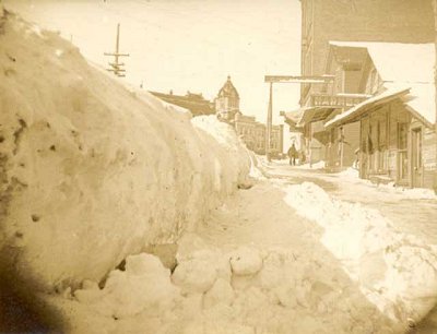One of the severest storms that has been known in this section for years, came swooping down on the city and adjacent country yesterday afternoon [January 7], about 4 o’clock. The wind blew a regular hurricane, and the air was filled with fine snow that blinded travelers and almost shut out eye sight… Trains were stalled and roofs were blown from one or two small houses on Capitol Hill.