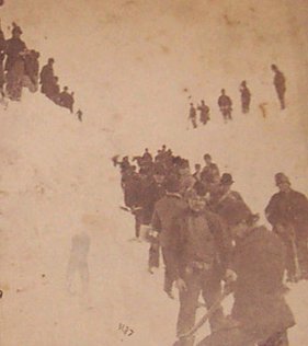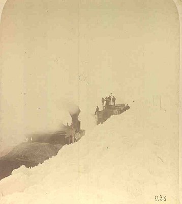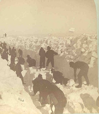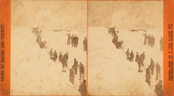 View of men digging out the tracks and huge expanses of snow (Racine, Wisconsin)--Photographer: T. Luck