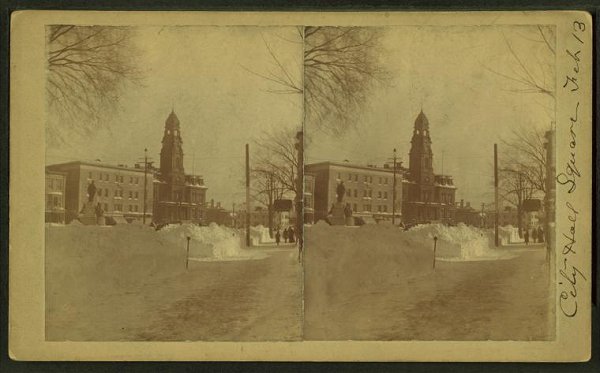 City Hall Square after a major snowstorm (Lynn, Massachusetts)