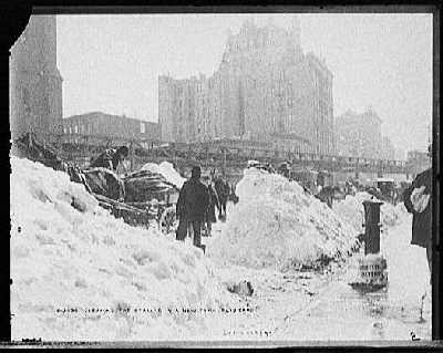 News account from Washington, DC on February 13, 1899: "The fiercest blizzard in the history of this part of the country has laid hold of Washington. The city lies buried beneath three and four feet of drifted snow. In places, the depth is rapidly increasing... At 3 o'clock the raging elements displayed no sign of weariness, and the blizzard blows apace. The streets are deserted of all traffic save a few pedestrians and an occasional supply wagon. The street cars have gone back to their barns, and Washington yields itself to the caprice of snow, ice, and wind."
