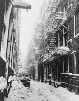 Alley used as an emergency dumping place for the snow taken from Chicago streets. The snowstorm dumped 19.2" snow at Chicago. Accumulations also included: Detroit: 6.3"; Indianapolis: 2.5"; and, Milwaukee: 6.2"