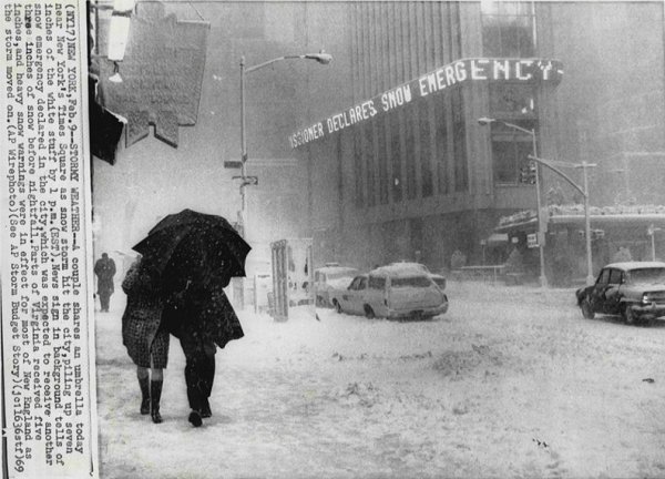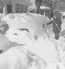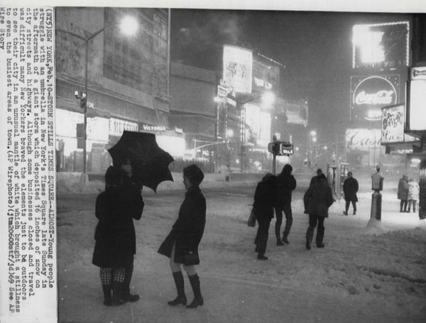 New York City (Associated Press Wire Photo). Accumulations included: Baltimore: 3.0"; Bedford, MA: 25.0"; boston: 11.1"; Bridgeport: 17.7"; Keene, NH: 15.0"; New York City: 15.3"; Philadelphia: 2.9"; Portland: 21.5"; and, Worcester: 15.6"