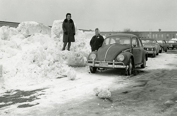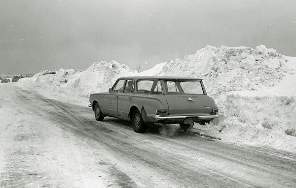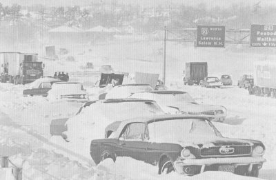 Abandoned cars jam a highway near Woburn, Massachusetts.