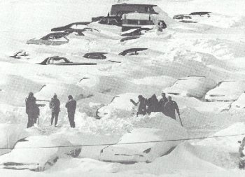 Six feet of snow covered the round, with drifts rising to 25 feet. All roads were closed, and as many as 2,000 cars were believed snowbound… Here in Watertown,…the residents saw sunshine today for the first time since last Thursday [January 27], when the blizzard began that dropped 71 inches of snow before letting up early this morning [February 1].