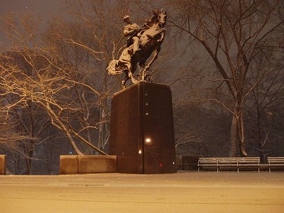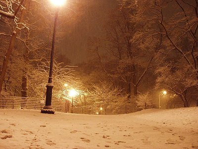 Early into the storm at Central Park (New York City). Snowfall amounts included: Allentown: 15.2"; Atlantic City: 4.2"; Baltimore: 13.1"; Boston: 17.5"; Bridgehampton, NY: 9.0"; Bridgeport: 13.5"; Danbury: 26.0"; Fairfield, CT: 30.2"; Harrisburg: 5.0"; Hartford: 21.9"; Islip: 19.9"; Leesburg, VA: 12.0"; New Rochelle, NY: 21.3"; New York City: 26.9"; Newark, NJ: 21.3"; Norton, MA: 15.0"; Philadelphia: 12.0"; Providence: 9.4"; Robbinsville, NC: 19.0"; Wilmington, DE: 14.4"; and, Worcester: 16.9"