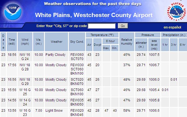 Mamaroneck, New York. Snowfall amounts included: Mamaroneck, NY: Trace; and, White Plains, NY: Trace