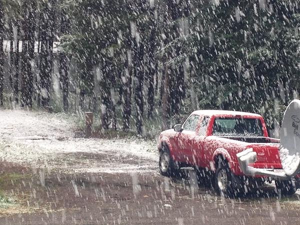 Kananaskis, Alberta (Canada). A system produced accumulating snow in the higher terrain to the southwest of Calgary.