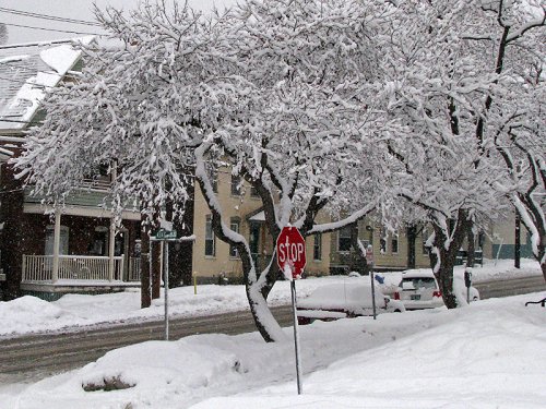 Tamaqua, Pennsylvania. Snowfall amounts included: Albany: 10.1"; Bangor: 8.2"; Boston: 0.8"; Burlington: 7.2"; Concord: 10.1"; Cumberland, RI: 0.5"; East Charlemont, MA: 9.0"; Francestown, NH: 10.0"; Goshen, MA: 7.0"; Hartford: 3.7"; Keene, NH: 9.9"; New York City: Trace; Portland: 8.0"; and, Worcester: 2.5"
