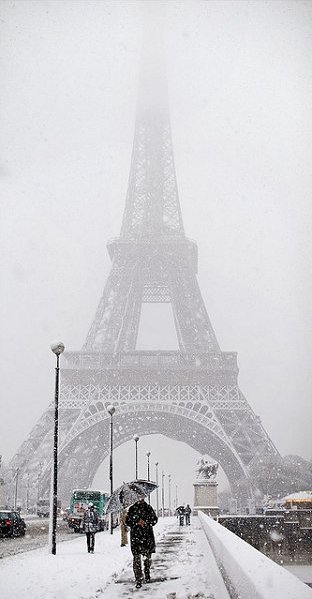 Paris. The storm brought 11 cm (4") of snow to Paris.