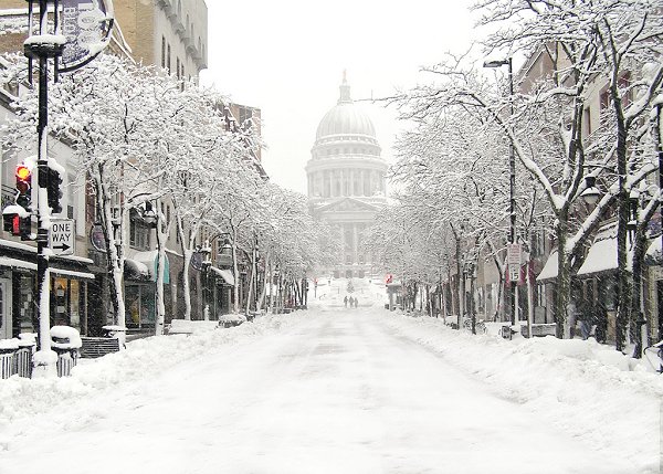 Madison, Wisconsin. The blizzard brought 15.2" snow to Madison.