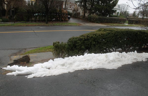 New York: Albany: 1.9"; Amsterdam: 3.5"; Bethpage: Trace; Bolton Landing: 4.0"; Greenville: 1.2”; Herkimer: 4.0"; Hyde Park: 1.0"; Islip: Trace; Knox: 3.0"; Massena: 7.0"; Middle Grove: 4.2"; New York City: Trace; Poughkeepsie: 1.4”; Somers: 0.1”; and, Troy: 2.0"