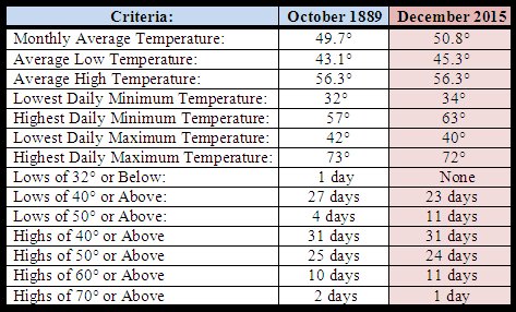 Finally, December 2015 was warmer than Octobers 1876, 1888, 1889, and 1925.
