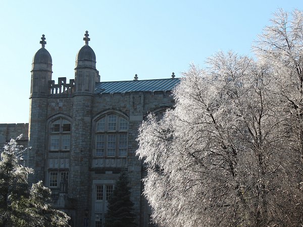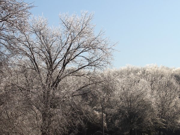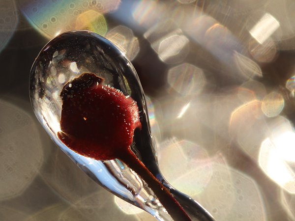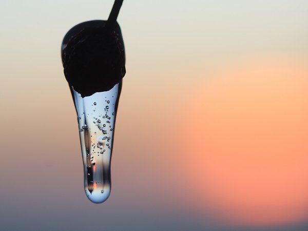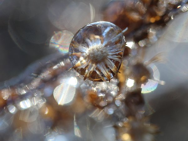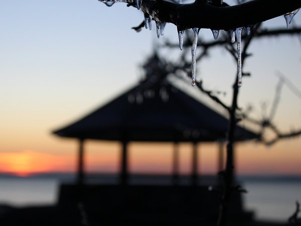 Reflection of the sunrise and gazebo at Manor Park in the icicle (Larchmont, New York)