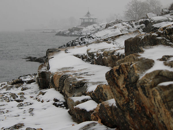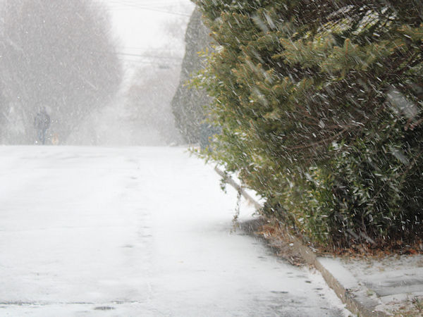 Larchmont, New York. Snowfall amounts included: Islip: 0.1"; New York City: 1.0"; Newark: 1.0"; Port Jervis: 1.8"; and, Wayne, NJ: 2.1"