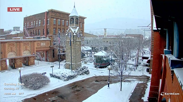 Corning, New York. Snowfall totals included Albany: 7.2"; Binghamton: 5.9"; Boston: Trace; Bridgeport: Trace; Hartford: 2.4"; and, Scranton: 4.2"