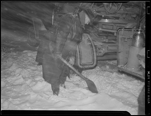 Fireman digging out fire truck, Valentine's Day storm in Boston (Photographer: Leslie Jones)