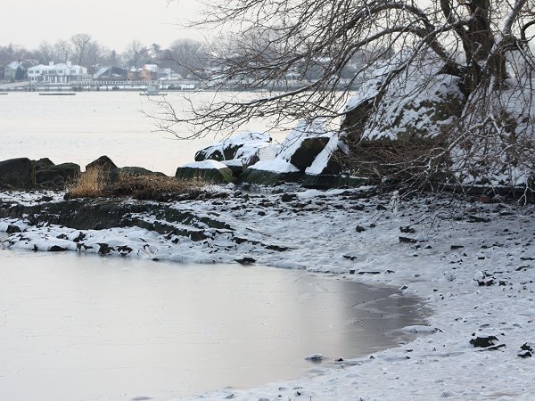 Mamaroneck, New York. The weak system brought 0.4" snow to Newark; 0.4" to New York City; 1.2" to Port Chester, New York; and, 1.3" to Greenwich, Connecticut.