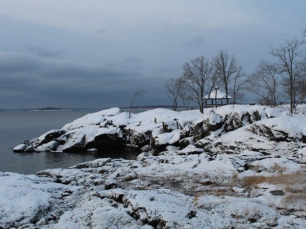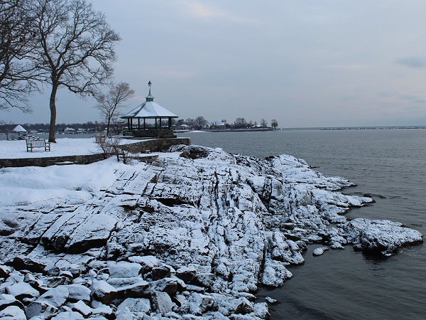 Larchmont, New York. Snowfall amounts included: Allentown: 2.1"; Armonk, NY: 2.2"; Atlantic City: 5.5"; Baltimore: 2.6"; Bridgeport: 1.8"; Egg Harbor Twp, NJ: 6.5"; Ewing, NJ: 3.4"; Forked River, NJ: 5.5"; Frederick, MD: 5.5"; Frostburg, MD: 4.8"; Greenwich, CT: 2.2"; Islip: 1.8"; Mays Landing, NJ: 7.0"; New Canaan, CT: 3.1"; New York City: 1.3"; Newark: 2.4"; Philadelphia: 3.1"; Smithtown, NY: 2.1"; Smyrna, DE: 5.5"; Sterling, VA: 0.5"; Upton, NY: 1.7"; Vienna, VA; 1.0"; Washington, DC: 0.7"; and, Wilmington, DE: 3.0"