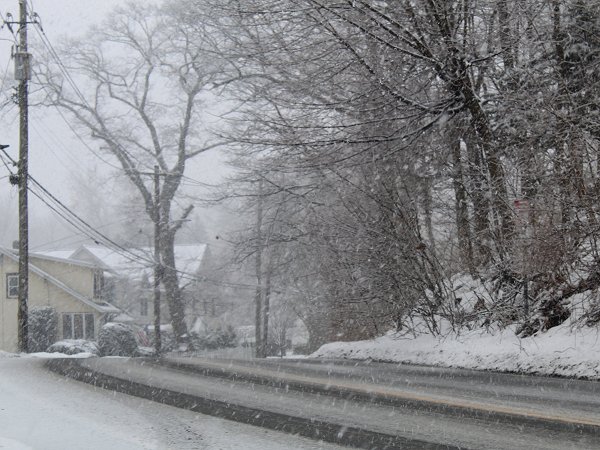 Dingmans Ferry, Pennsylvania. Snowfall amounts included: Albany: 0.8"; Allentown: 4.1"; Armonk, NY: 2.5"; Baltimore: 0.3"; Binghamton: 4.5"; Bridgeport: 0.5"; East Nantmeanl Twp, PA: 5.0"; Green Pond, NJ: 5.4"; Harrisburg: 3.6"; Hartford: 0.3"; Holland Patent, NY: 10.0"; New Fairfield, CT: 3.3"; New York City: 0.4"; Newark: 1.2"; Philadelphia: 0.8"; Point Rock, NY: 7.2"; Scranton: 2.0"; Sterling, VA: 0.2"; Valley Forge, PA: 4.5"; Washington, DC: Trace; White Plains, NY: 2.0"; Whitehouse Station, NJ: 4.9"; and, Wilmington, DE: 1.3".