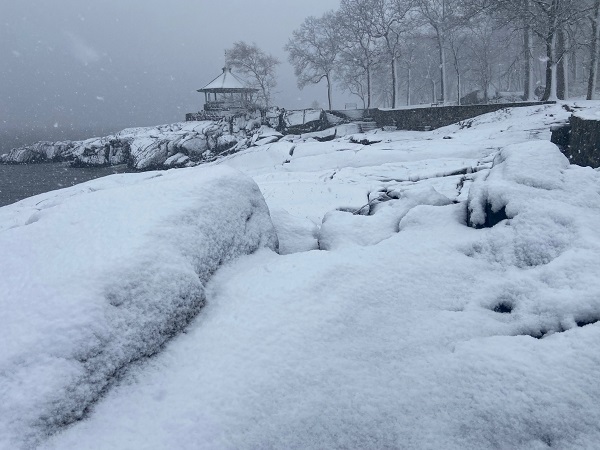 New York City. Snowfall amounts included: Boston: 0.1"; Bridgeport: 7.6"; Farmington (3 ENE), CT: 15.5"; Islip: 4.3"; New York City: 3.2"; Philadelphia: 0.6"; Providence: 6.2"; and, Warwick, NY: 13.4"