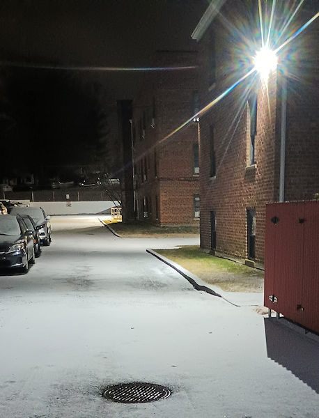 Larchmont, New York. Snowfall amounts included: Boston: 0.6"; Bridgeport: 0.6"; Islip: 0.3"; New York City: 0.5"; Newark: 0.5"; and, Philadelphia: Trace