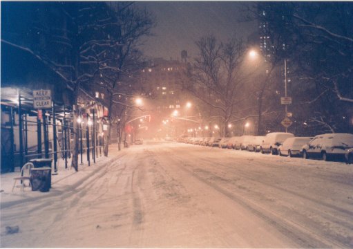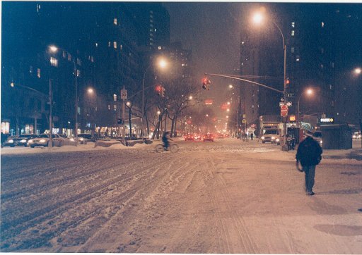 Looking down Broadway from near W 71st Street (New York City, New York). Snowfall amounts included: Baltimore: 3.7"; Boston: 3.3"; Bridgeport: 3.0"; Concord: 2.0"; Danbury: 3.2"; Hartford: 1.7"; New York City: 5.8"; Newark, NJ: 5.7"; Philadelphia: 7.0"; and, Portland: 3.8"