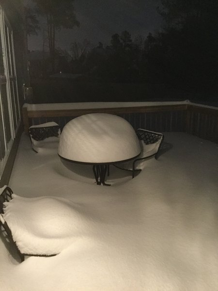 North Carolina: Asheville: 13.5”; Charlotte: 3.3”; Kitty Hawk: 0.1"; Raleigh: 1.2”; and, South Mills: 2.0”