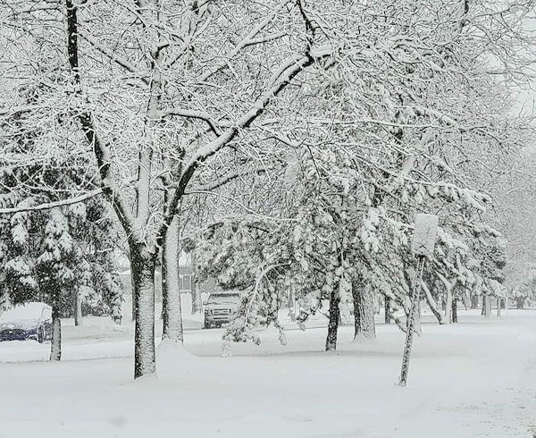 Wyandotte, Michigan. Snowfall amounts included: Bangor: 3.0"; Boston: Trace; Buffalo: 4.1"; Caribou: 9.1"; Cleveland: 1.8"; Concord: 3.0"; Detroit: 6.8"; Flint, MI: 5.0"; and, Portland: 0.9"