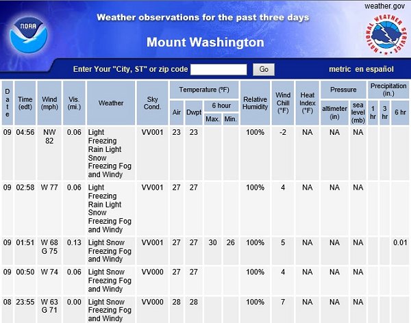 Mount Washington Observations