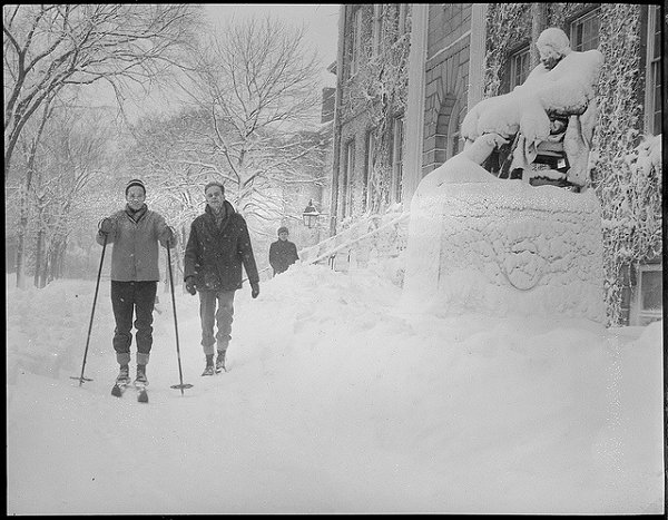 John Harvard statue after snowstorm (Cambridge, Massachusetts)--Photographer: Leslie Jones. Snowfall amounts included: Albany: 2.3”; Boston: 9.0”; Bridgeport: 3.5”; Concord: 4.8”; New York City: 5.6”; Portland: 8.1”; Providence: 4.9”; and, Worcester: 4.5”