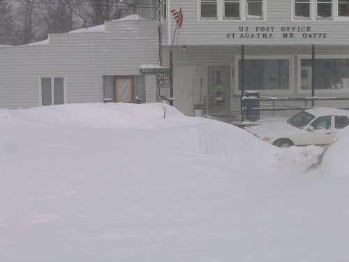 St. Agatha, Maine. Snowfall amounts included: Bangor: 0.6"; Burlington: 2.2"; Caribou: 14.5"; Portland: Trace; and, Quebec City: 11.5" (29.1 cm)