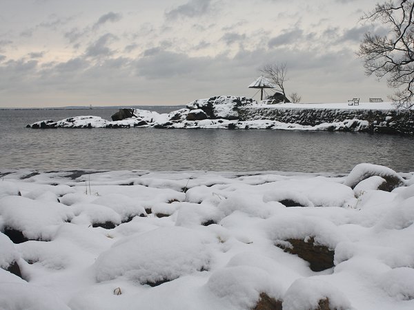 Larchmont, New York. Snowfall amounts included: Allentown: 6.6"; Baltimore: 0.2"; Boston: 10.6"; Bridgeport: 9.0"; Columbia, CT: 14.5"; Concord: 5.8"; Hartford: 7.6"; Haworth, NJ: 8.8"; Hopkinton, MA: 16.0"; Islip: 3.6"; Lincoln, RI: 14.5"; Milford, MA: 17.5"; New York City: 5.0"; Newark, NJ: 4.3"; Philadelphia: 1.0"; Pomfret, CT: 16.5"; Portland: 6.2"; Providence: 7.0"; Quincy, MA: 16.0"; South Boston, MA: 15.5"; Wilmington, DE: 1.0"; and, Worcester: 9.6"
