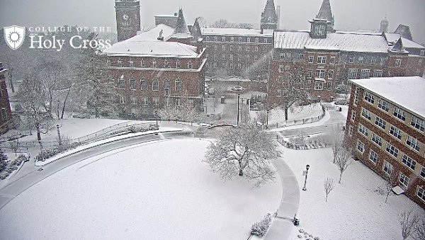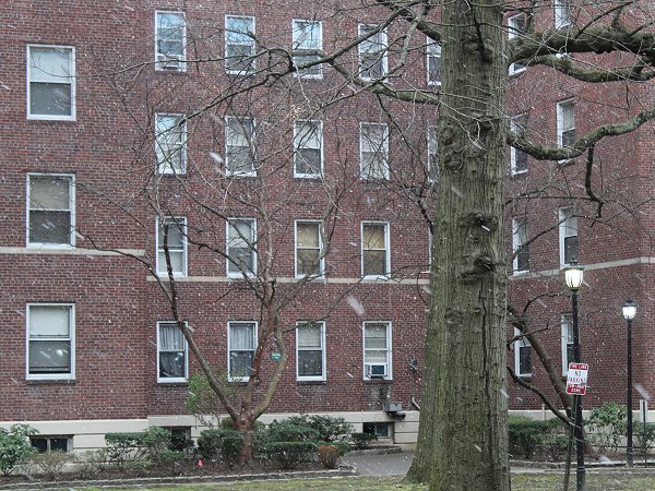 Larchmont, New York. Snowfall amounts included: Albany: 6.1"; Allentown: Trace; Bangor: 7.1"; Binghamton: 2.4"; Boston: Trace; Bridgeport: Trace; Burlington: 5.8"; Caribou: 0.8"; Colrain, MA: 8.0"; Concord, NH: 7.0"; East Hawley, MA: 9.8"; Hartford: 3.4"; Islip: Trace; New York City: Trace; Newark: Trace; Portland: 6.1"; Providence: 0.2"; and, Worcester: 4.2"