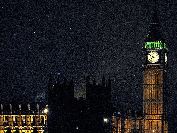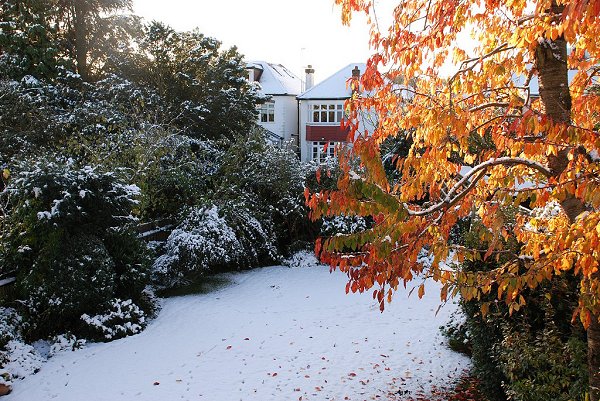 Falling snow (London). Parts of southeast England picked up more than 1" snow. High Wycombe received 1.2" (3.0 cm) snow.