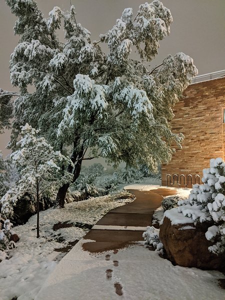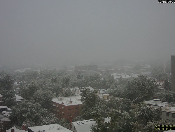 Outside the National Weather Service Forecast Office, Rapid City (East Rapid City, South Dakota)—September 7, 2020. On September 5, the temperature reached 102°. On September 7, 1.0” snow fell.