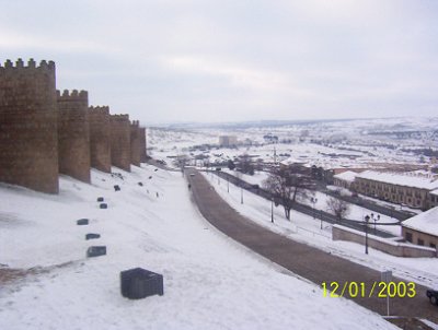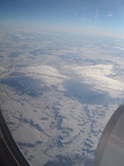 Photo of snow-covered Spain from the air (Near Peñafiel, Spain; December 27, 2004)