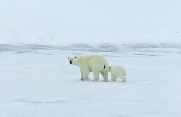 Mother polar bear and cub, Arctic Ocean, north of western Russia (Photographer: Mike Dunn, NC State Museum of Natural Sciences)