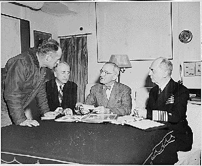 President Harry Truman receiving a weather report during preparations for the Potsdam Conference (July 12, 1945)